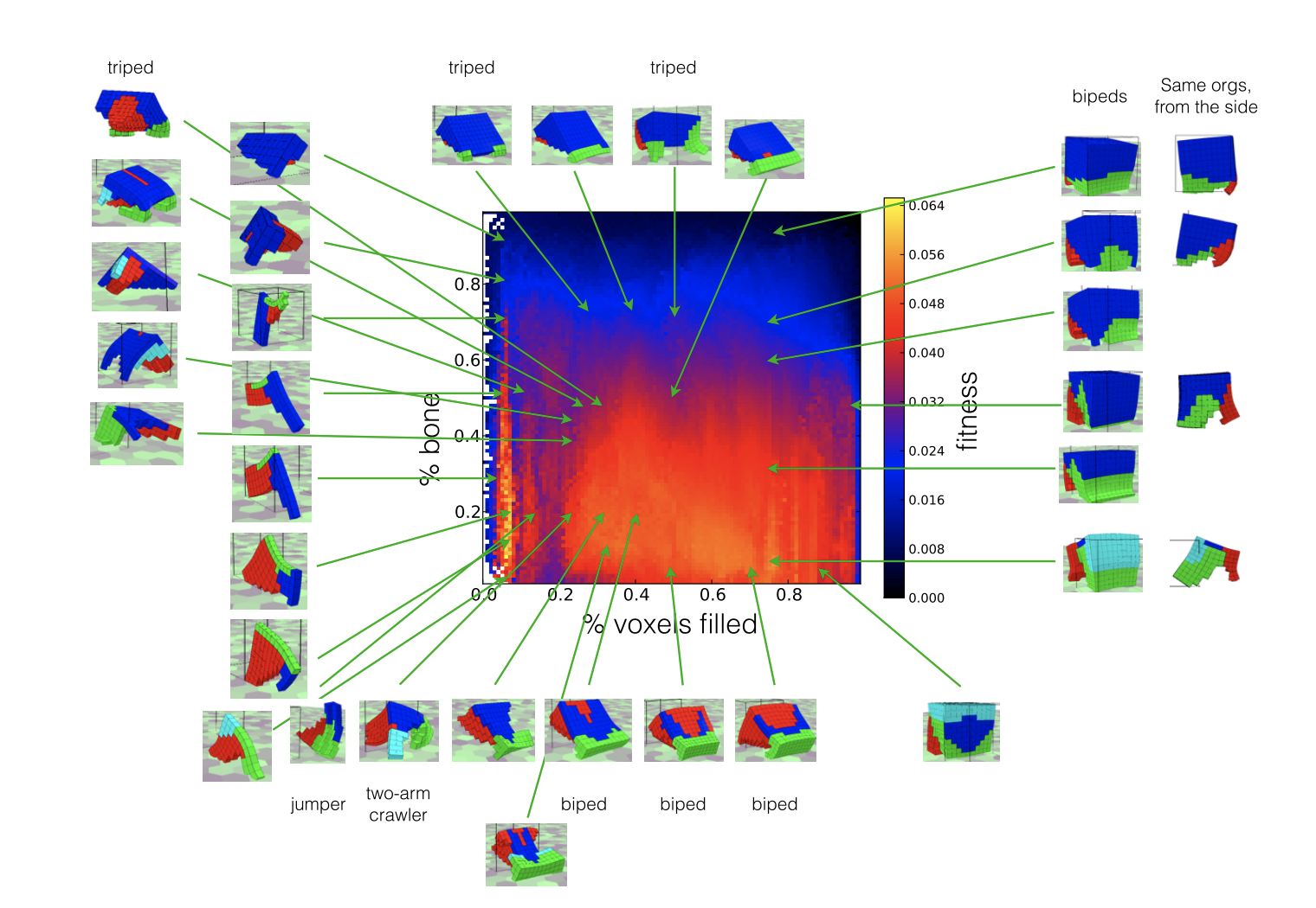 - Quality-diversity algorithms work equally well for exploring hardware configurations as for software features